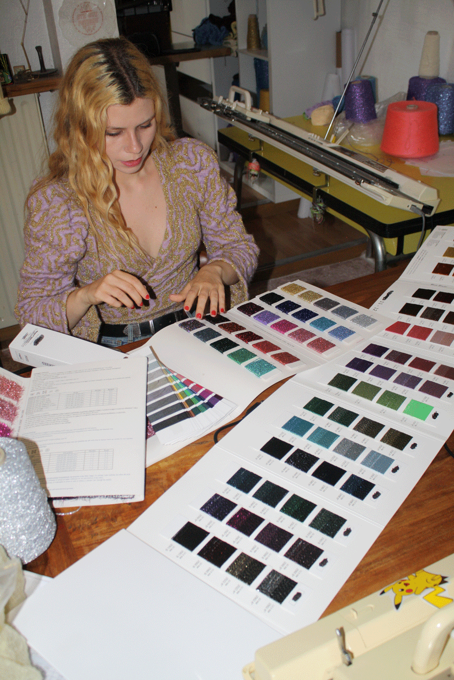 Alicia teamed up with Baptiste, a graduate of a fashion design school and a machine knitting designer. In their transformed home-turned-studio in Lille, they both knit garments using vintage knitting machines from the 80s that have been hacked.
