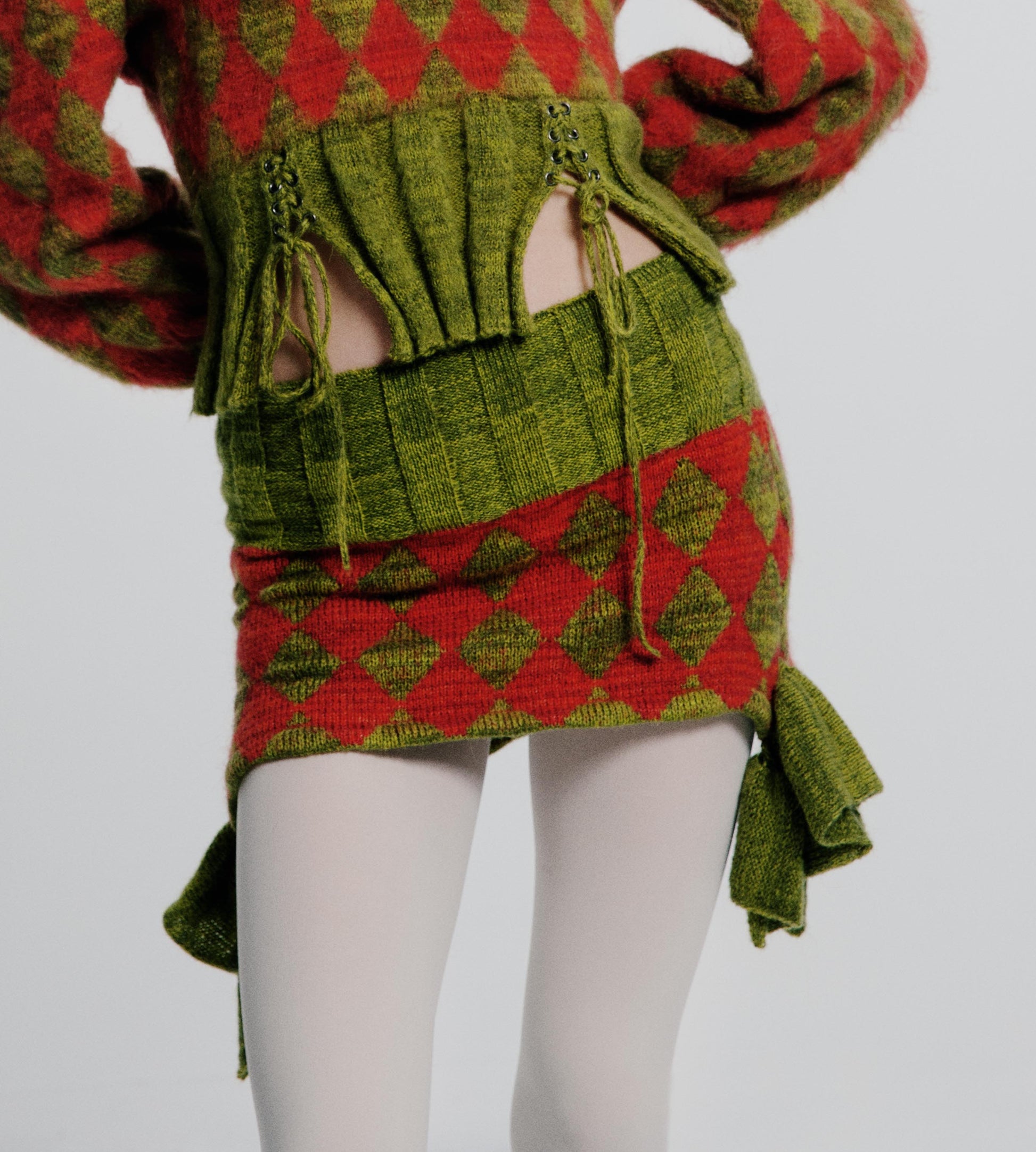 The Ophelia mini skirt features ruffles on the sides, adding a playful touch to its design.We've combined two different colored yarns to create a beautiful mélange, giving it exceptional hues and texture.