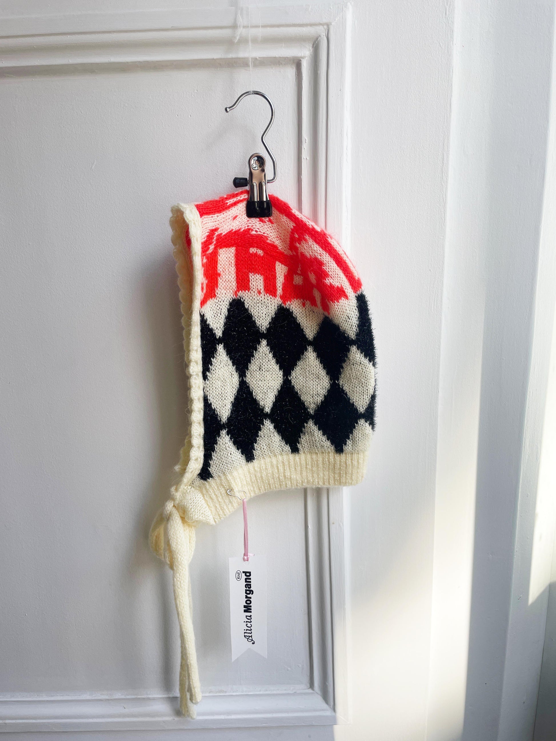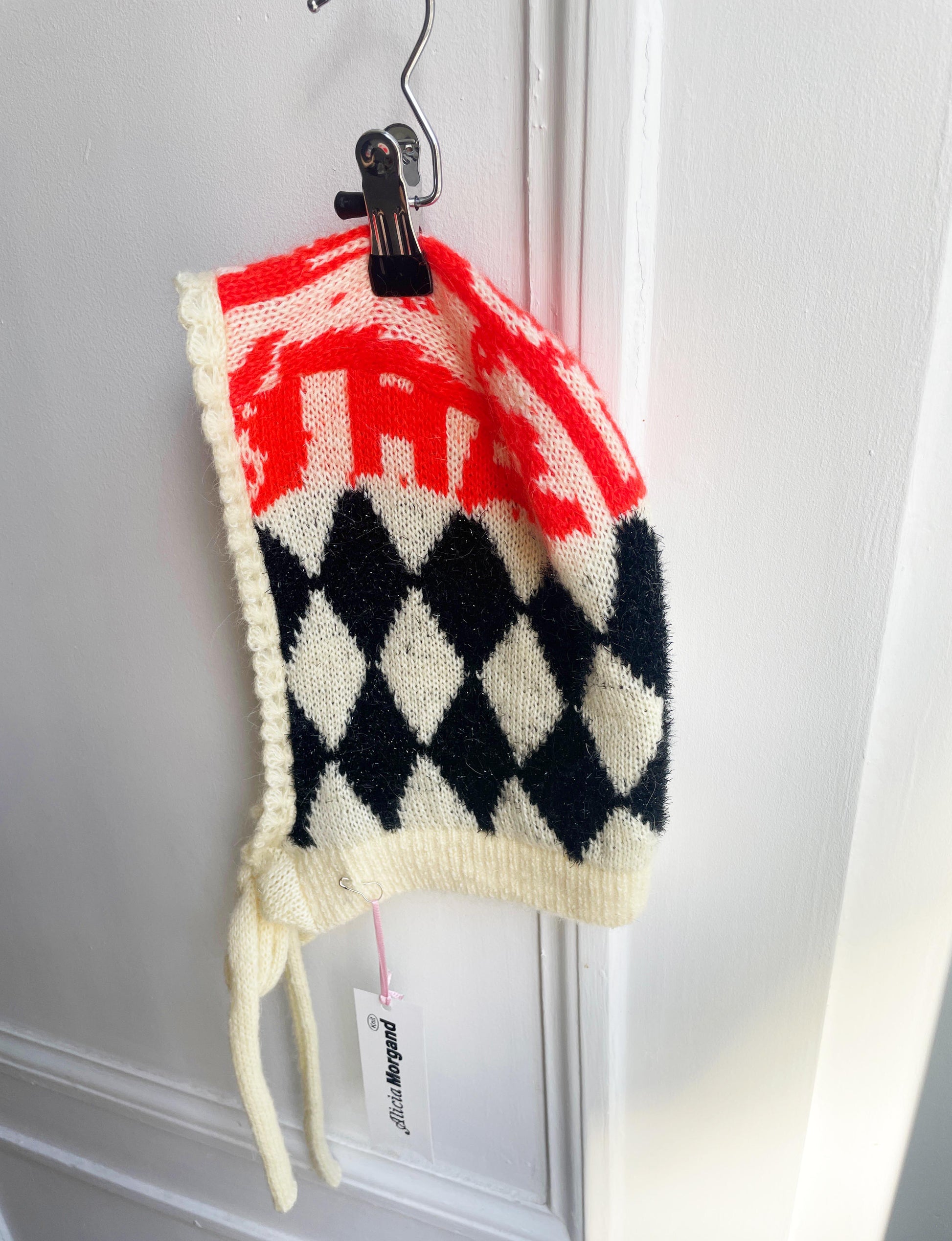 Our Circus Balaclava. The perfect blend of warmth and style. Made with mohair, this balaclava keeps you cozy during winter while allowing you to customize the fit with adjustable ties. It's made to order, and knitted by us in our workshop in France.