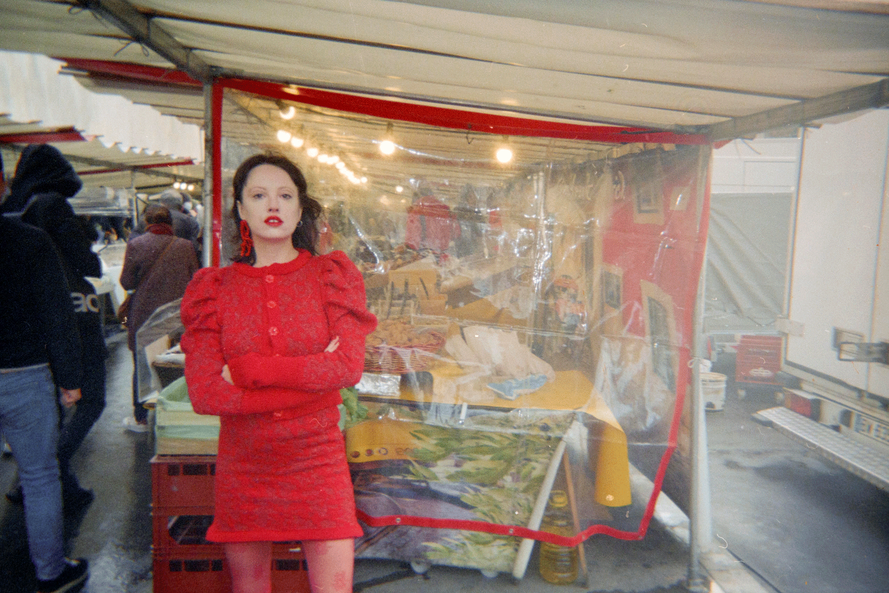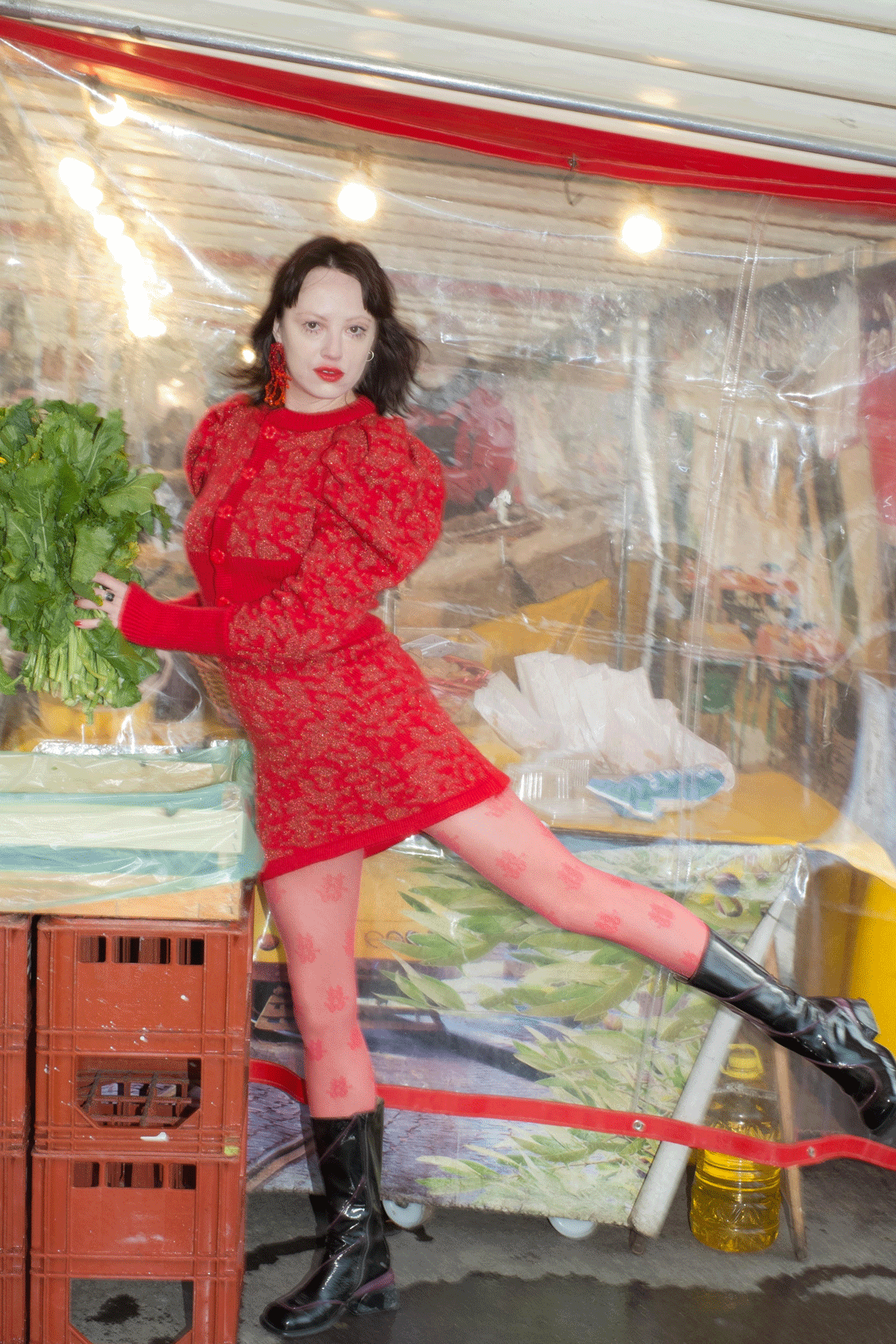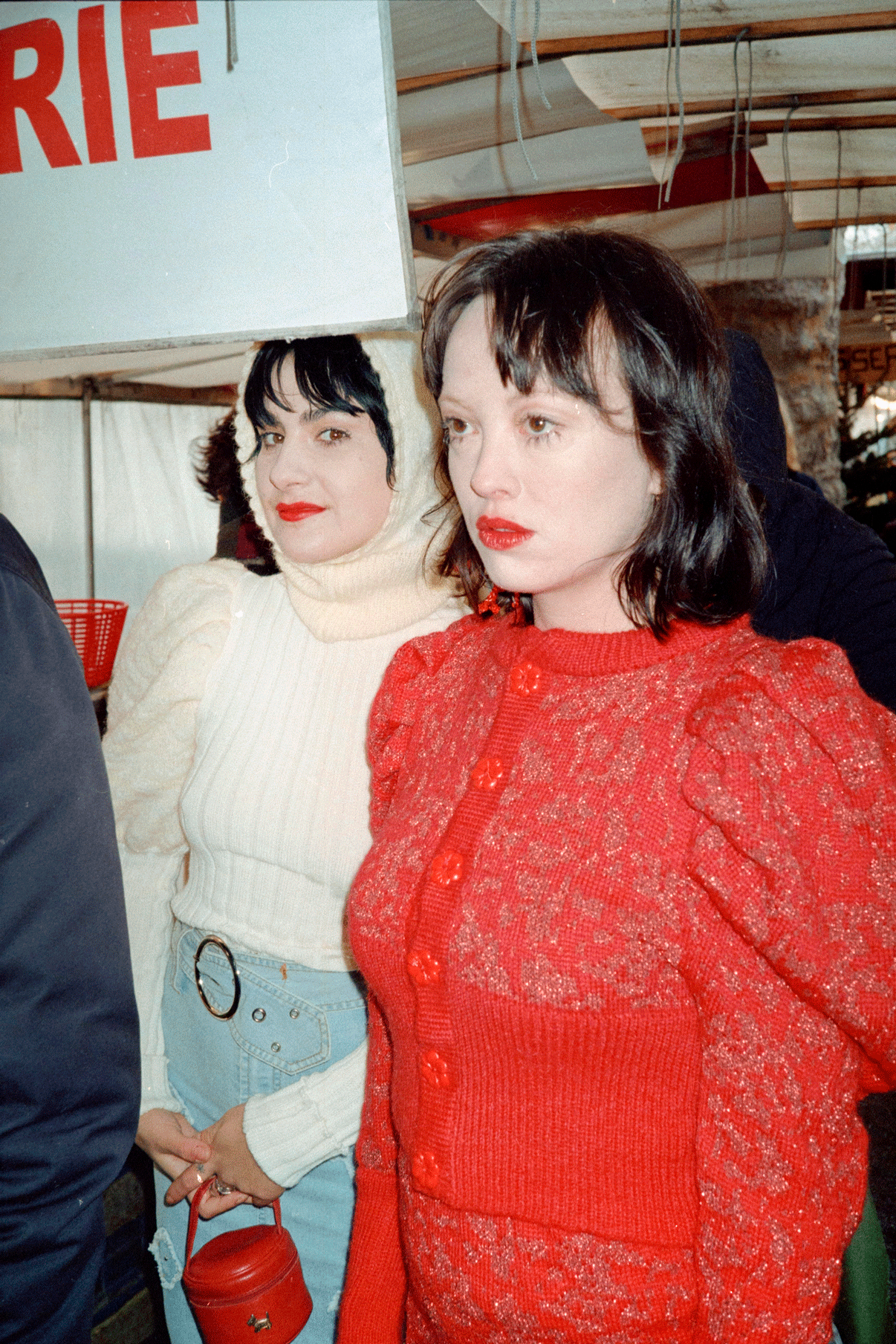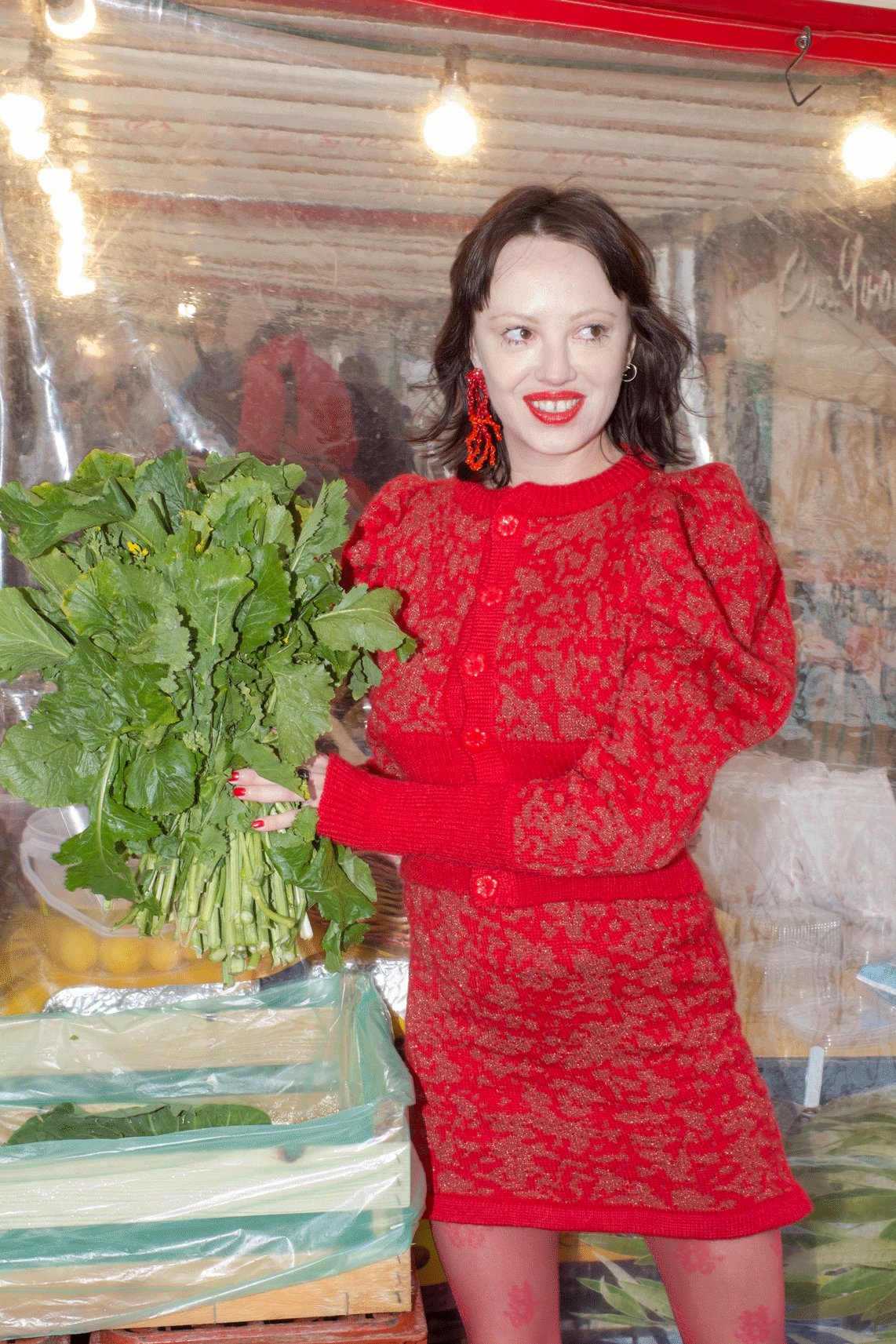 Pattern is made from shiny metallic red yarn and red mohair !