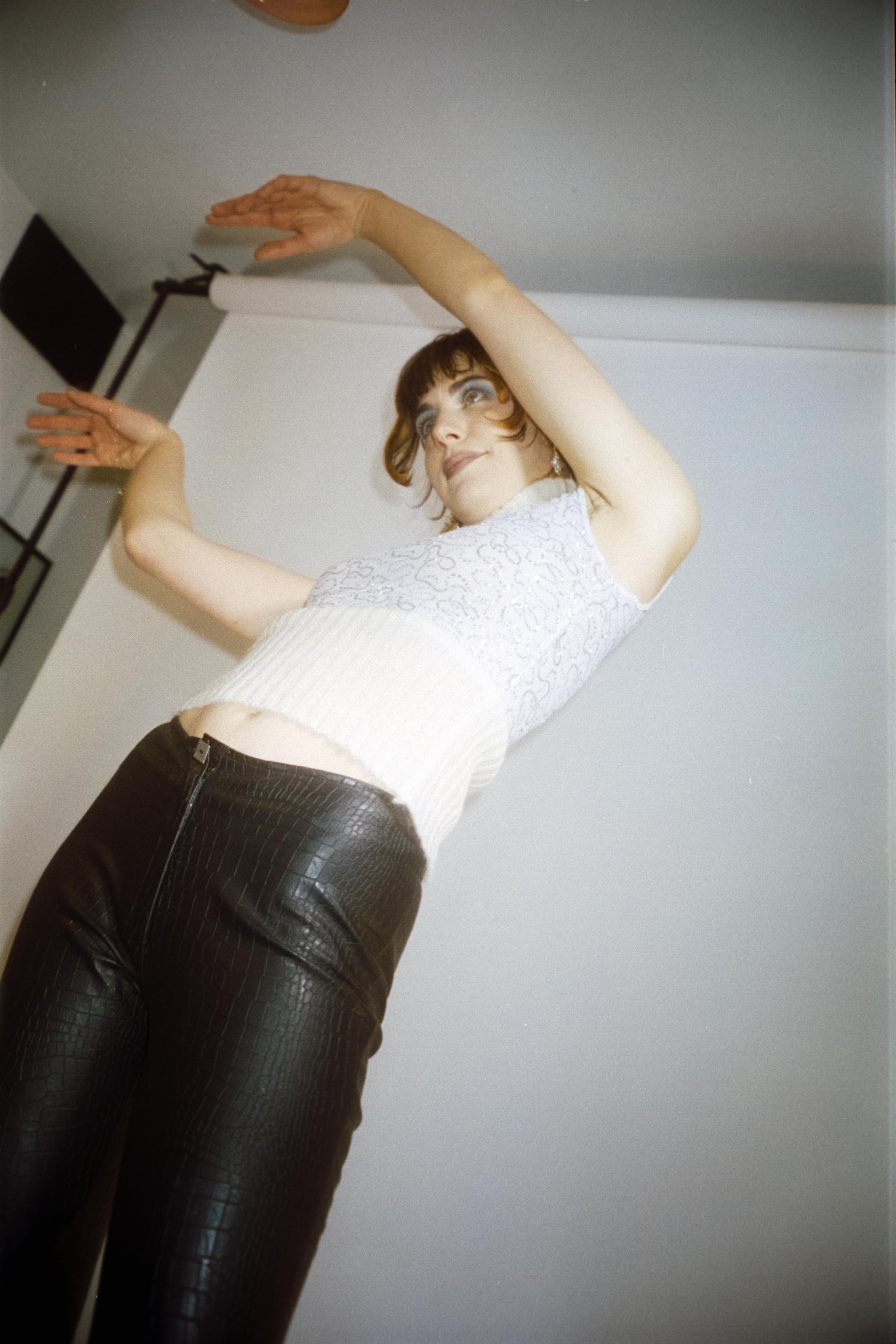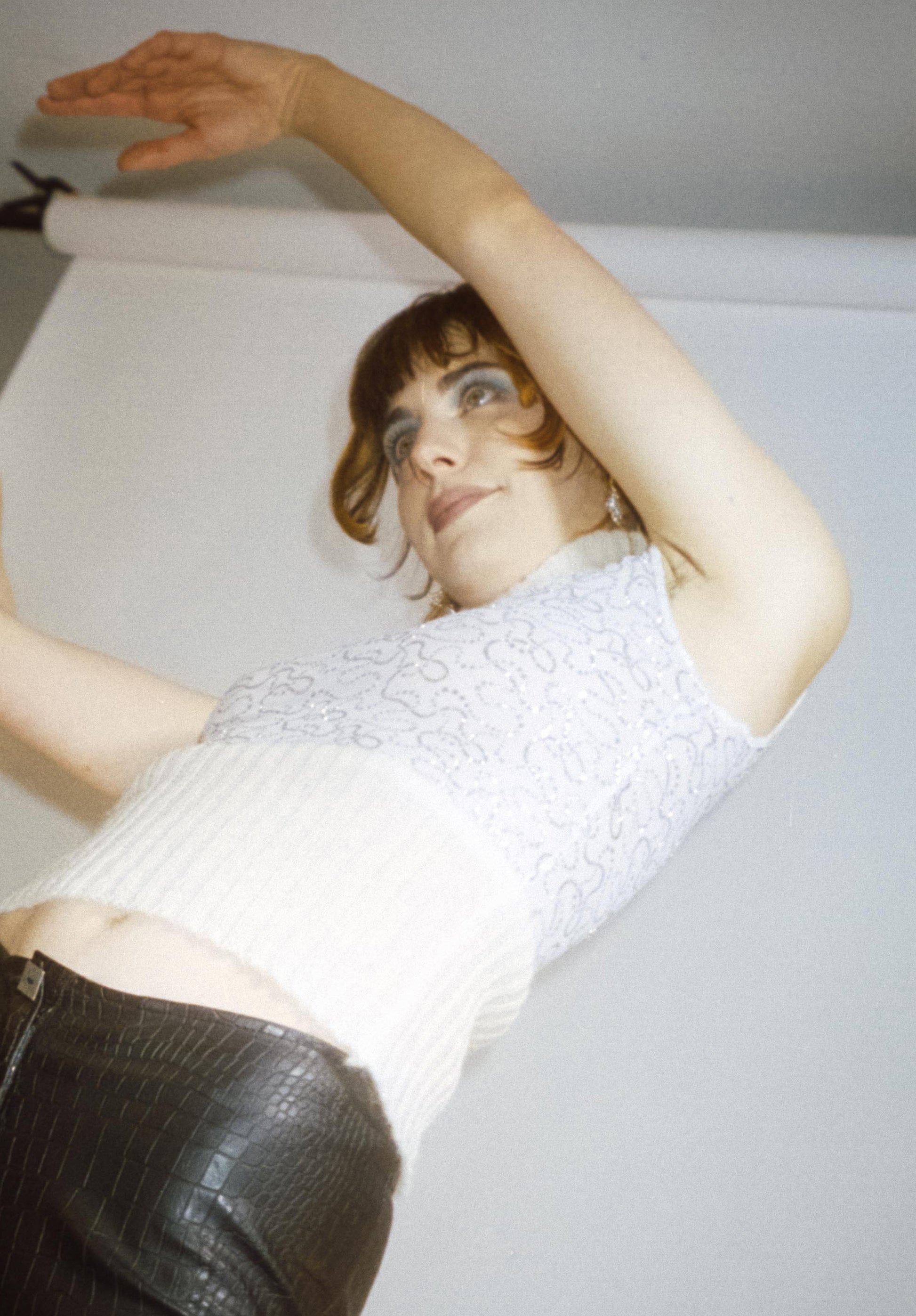 Kristi Top is made from a shiny and transparent gym fabric and features knitted details ! The fabric may it loose some glitter.
