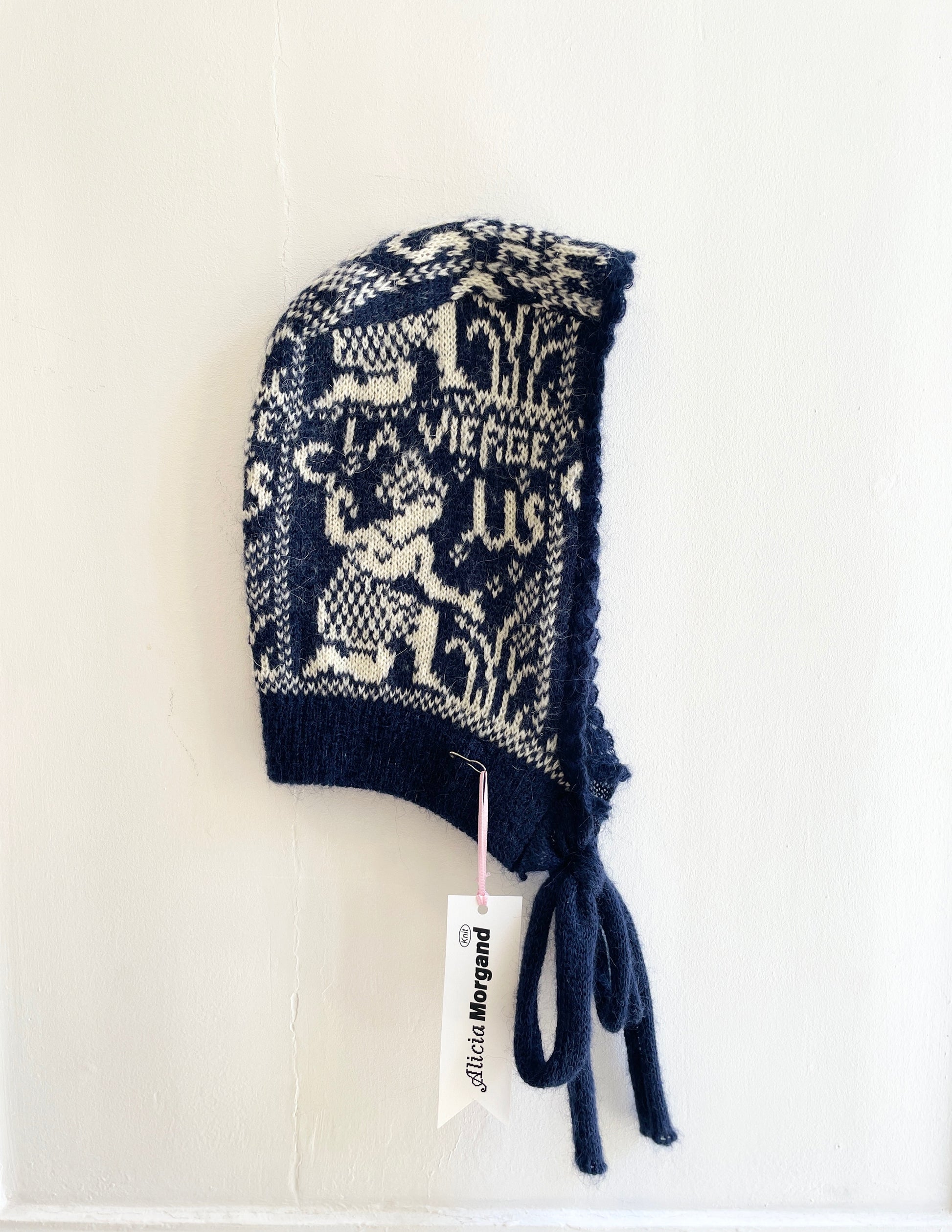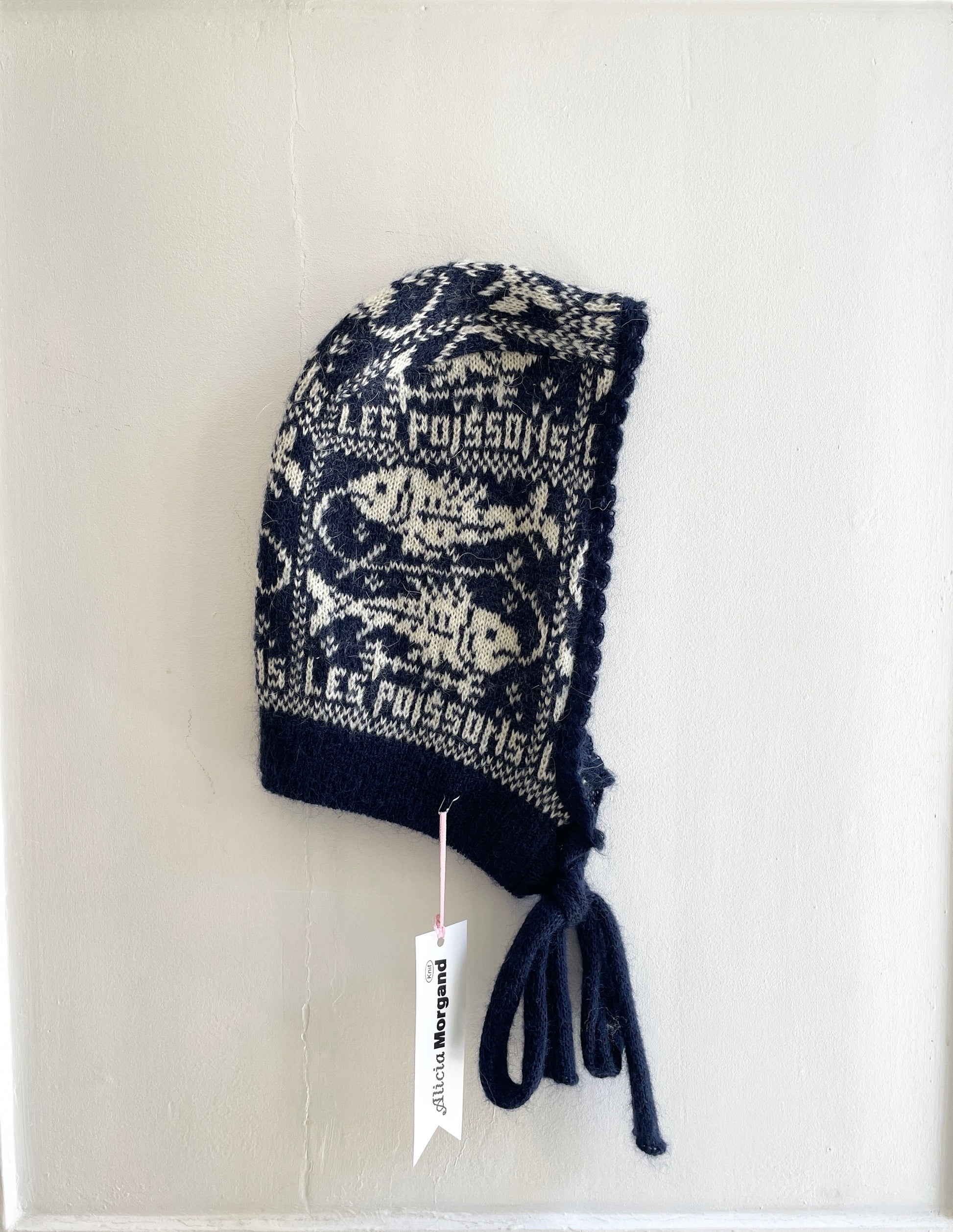 Our Navy and Cream Zodiac Balaclava! The perfect blend of warmth and style. Made with mohair and merino, this balaclava keeps you cozy during winter while allowing you to customize the fit with adjustable ties. It's made to order, and knitted by us in our workshop in France.