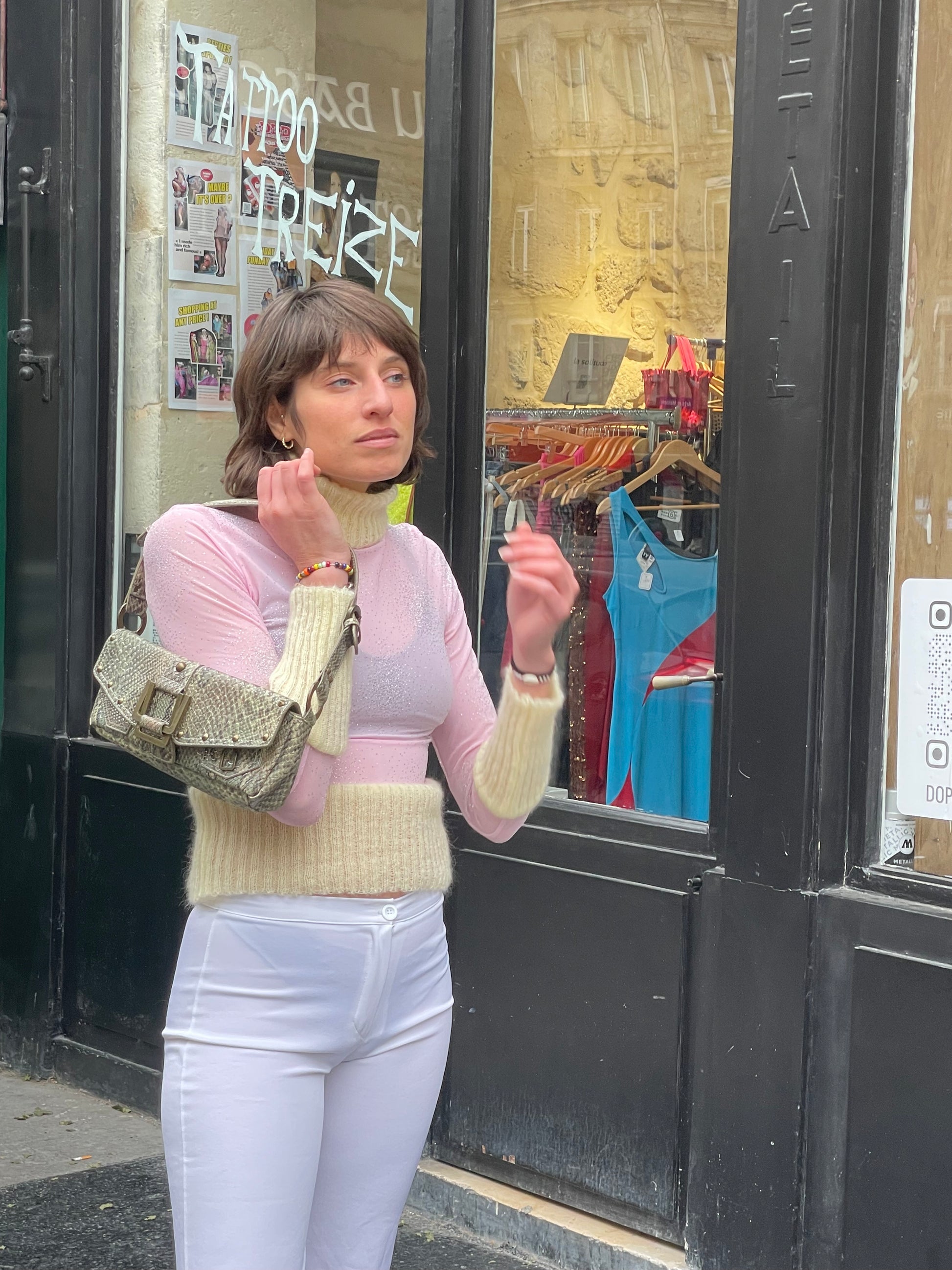 Olena pink Top is made from a transparent glittered pink mesh and features knitted details ! The fabrics may loose some glitters.