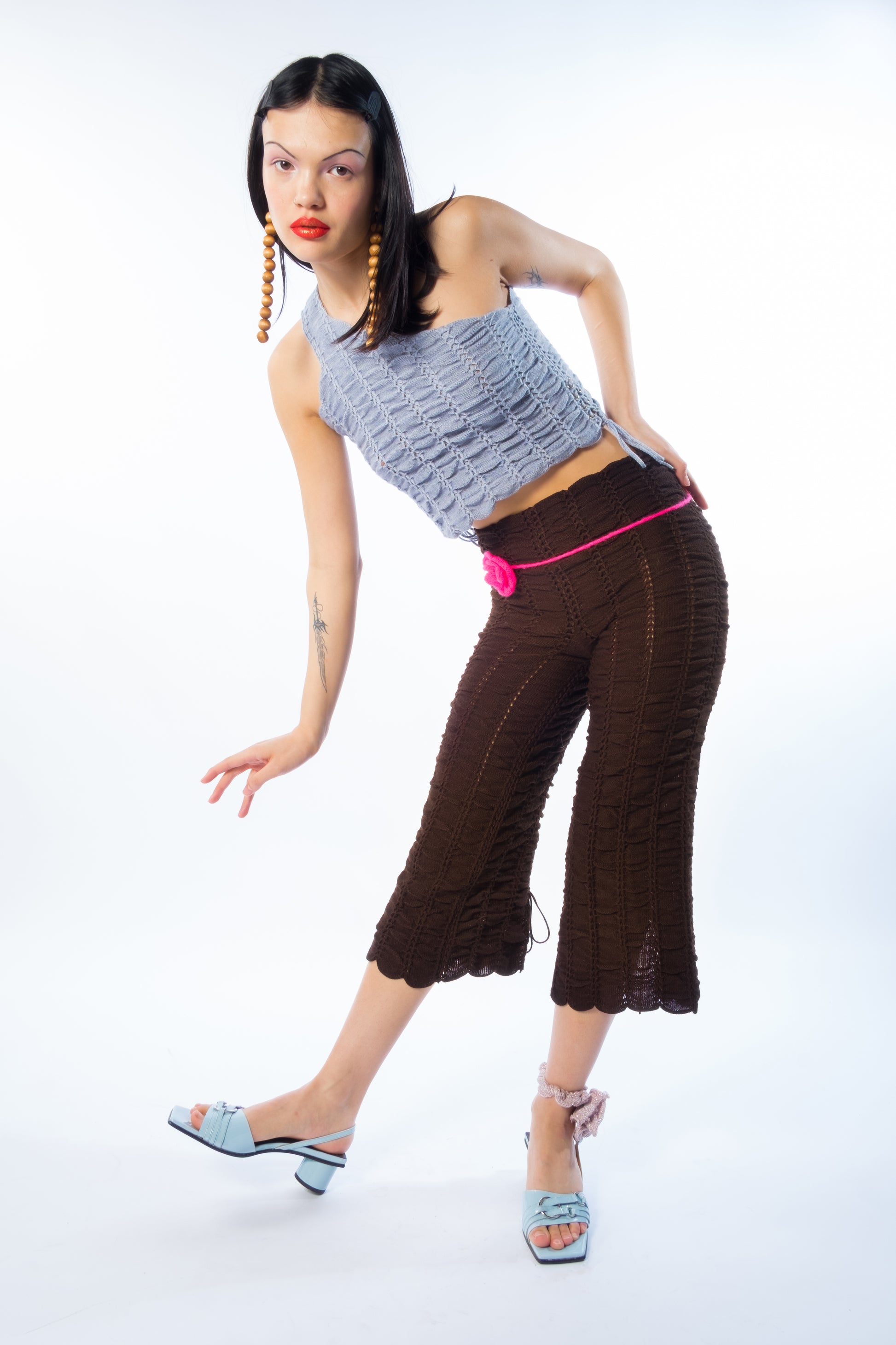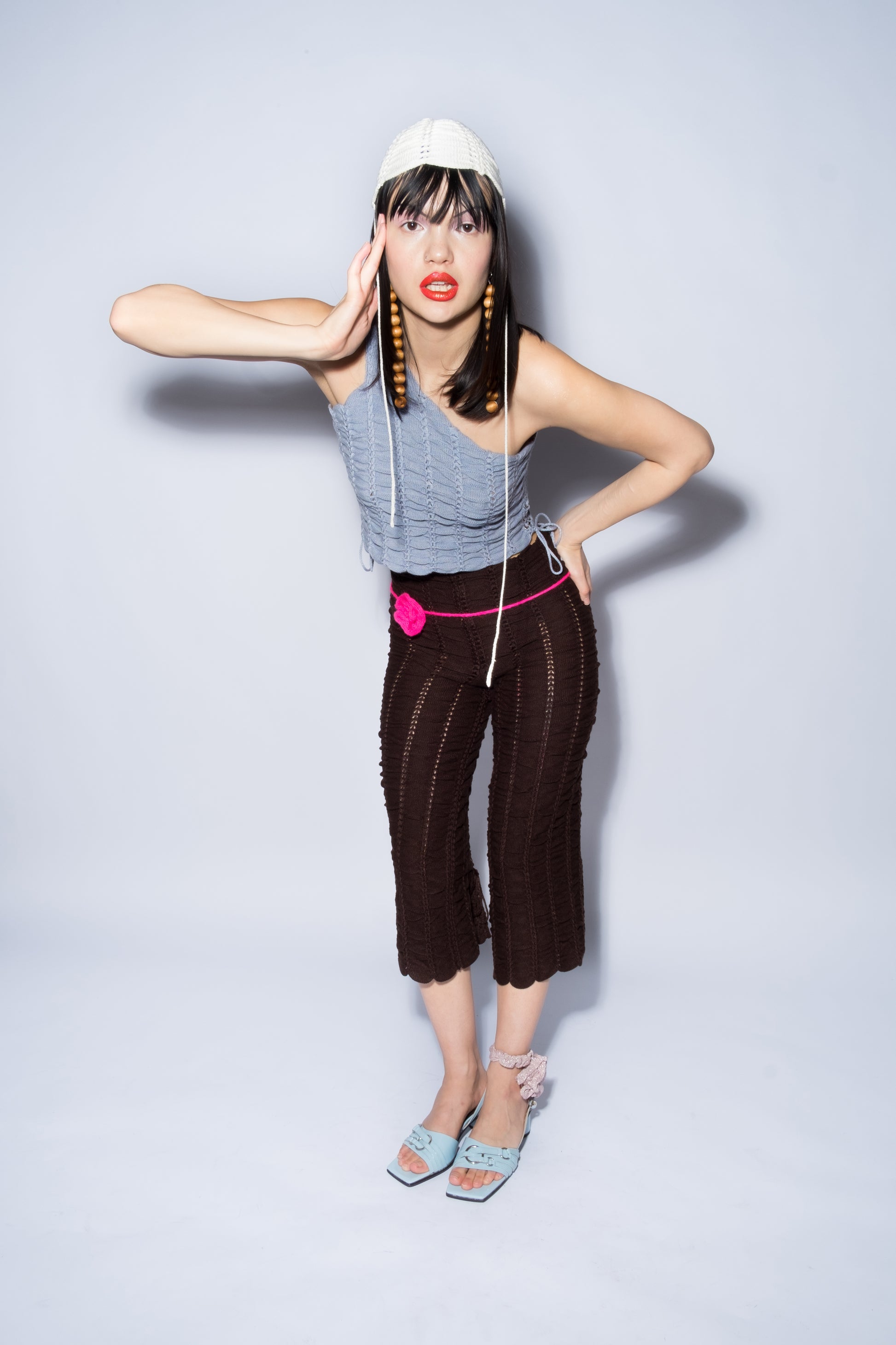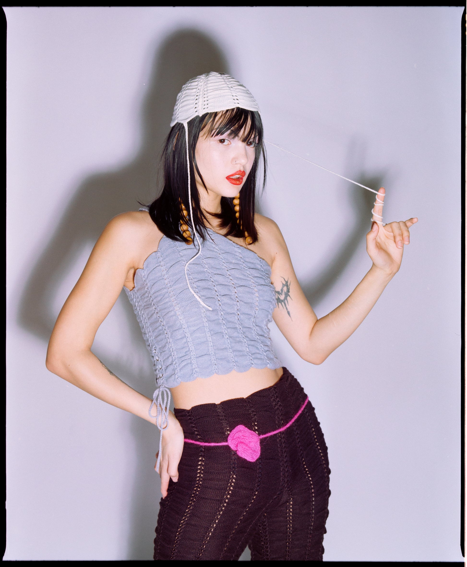 ABOUT THE STITCH / Each piece is handcrafted by us with a delicate knitting technique using a noble material: merino wool. It results in a fine and textured material that is lightweight and comfortable for sunny days.