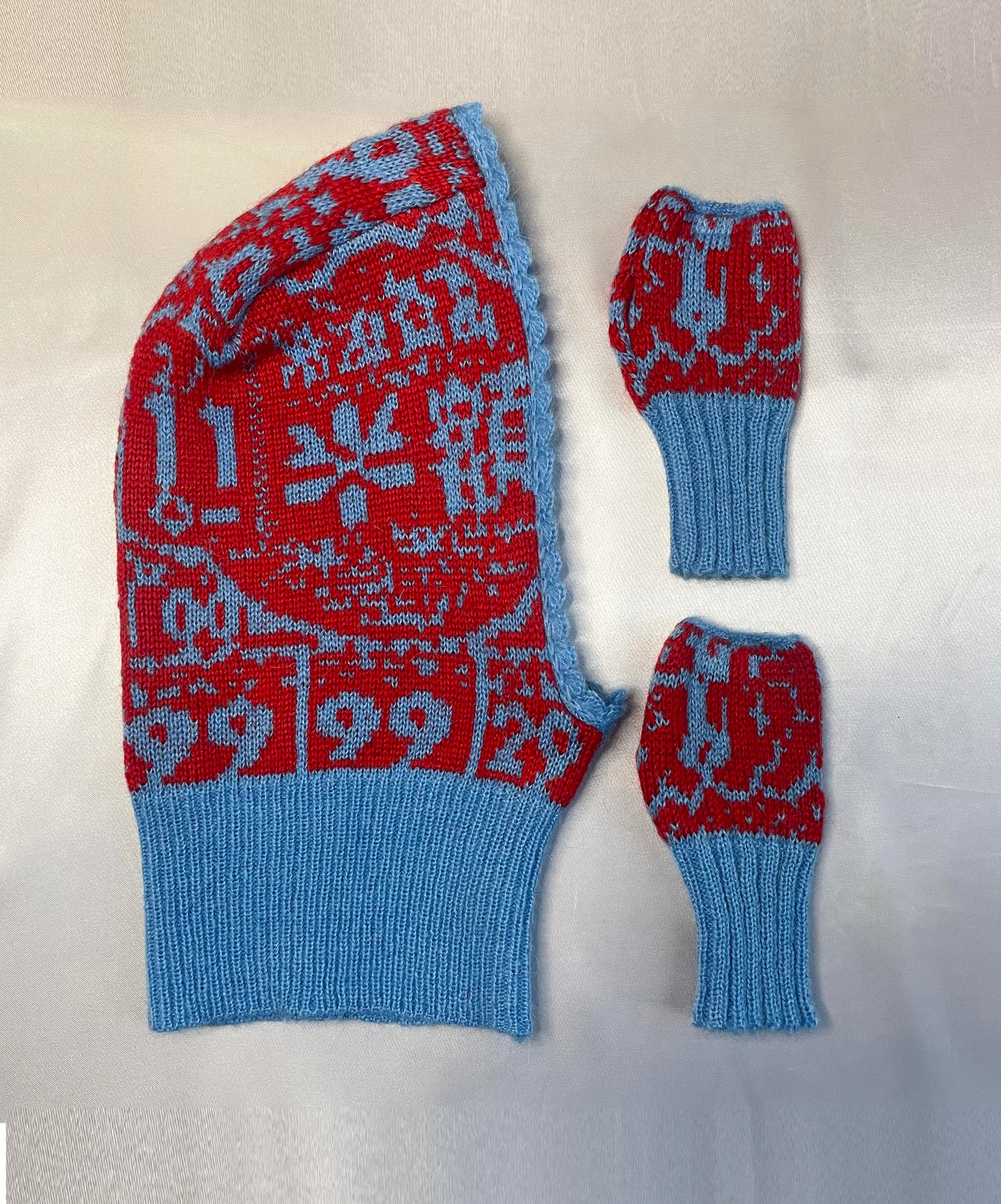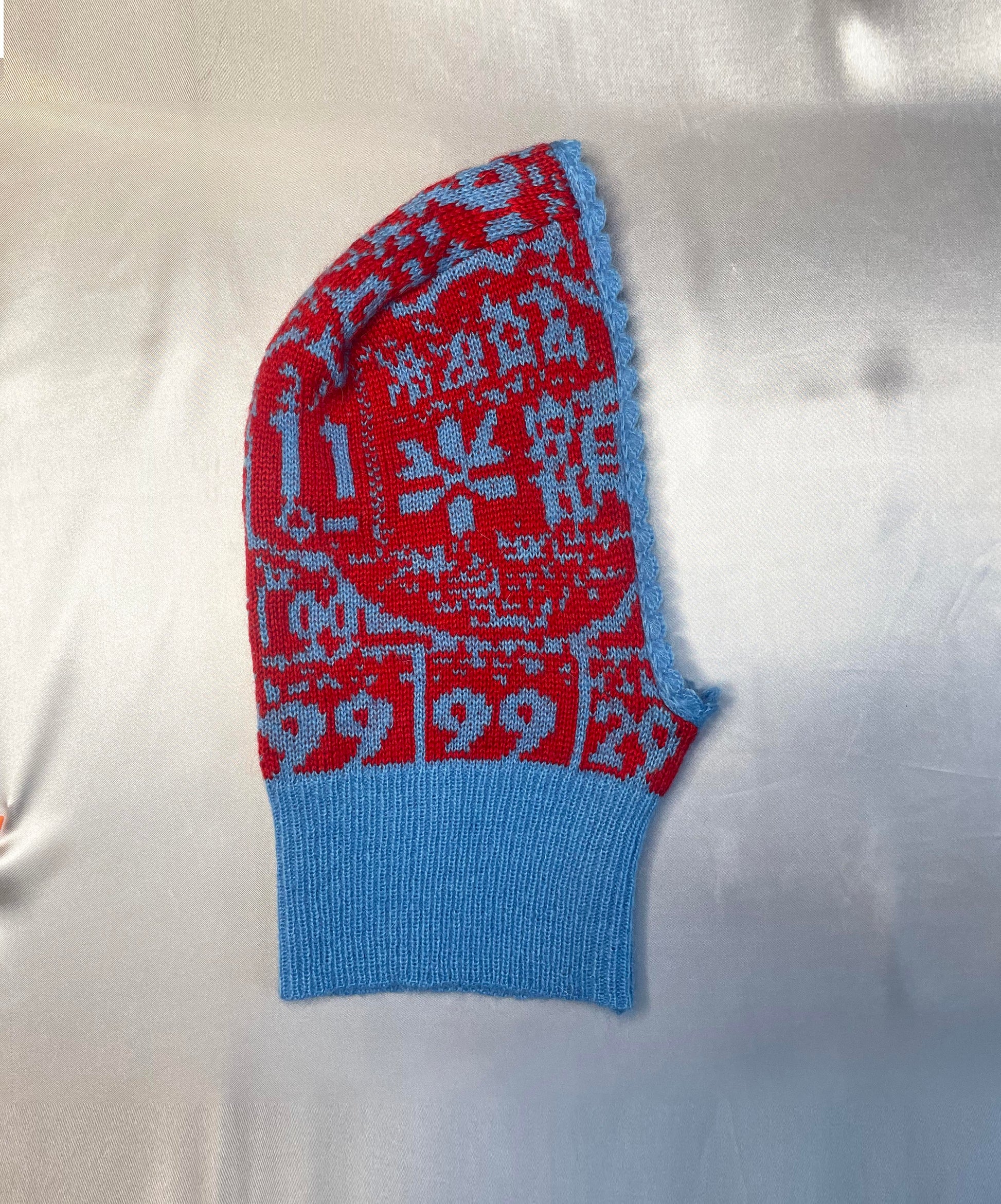 Our Balaclava and matching mittens set, made to order by Alicia and Baptiste, knitted in their workshop in Lille.