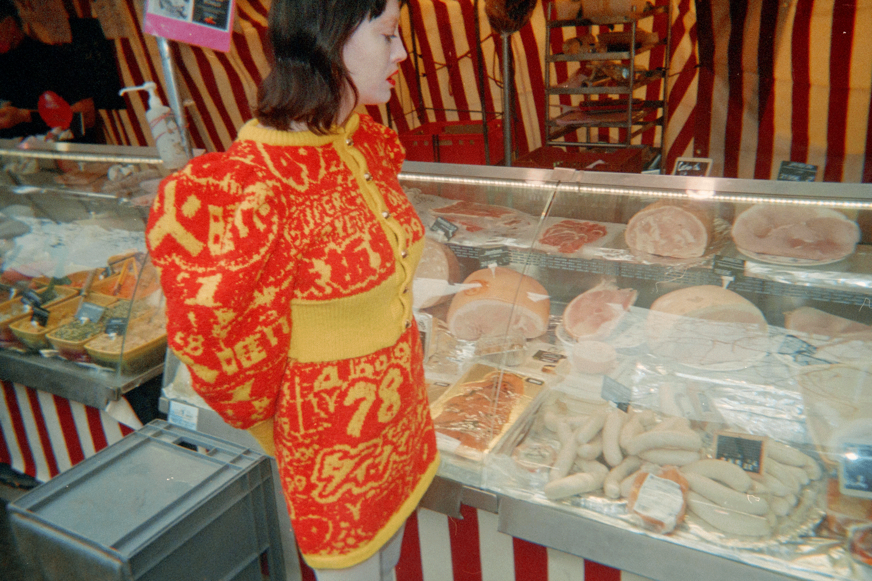 Pattern is made from various food catalog from around the world ! As it’s a deadstock wool, the red thread may have a slightly different tone.