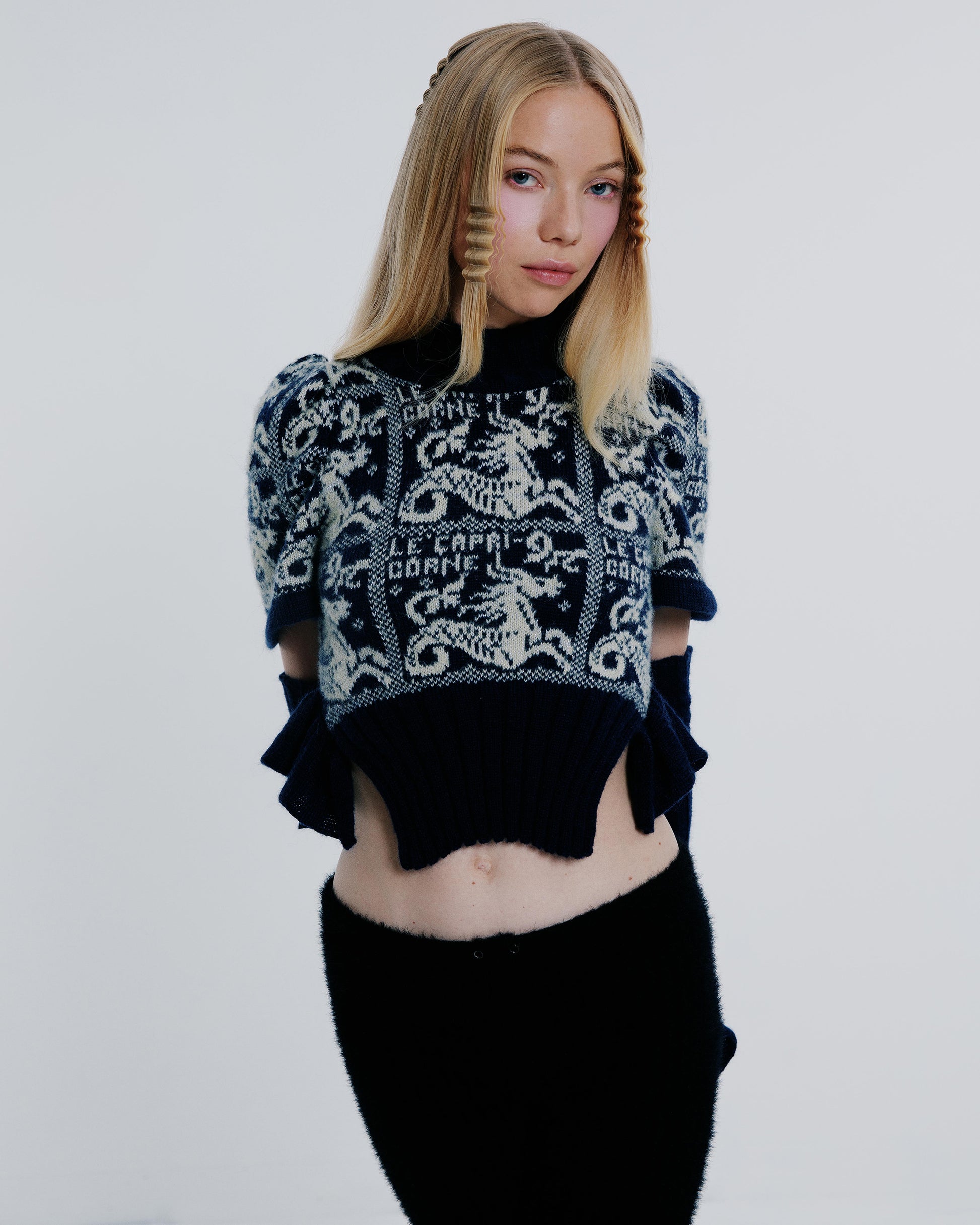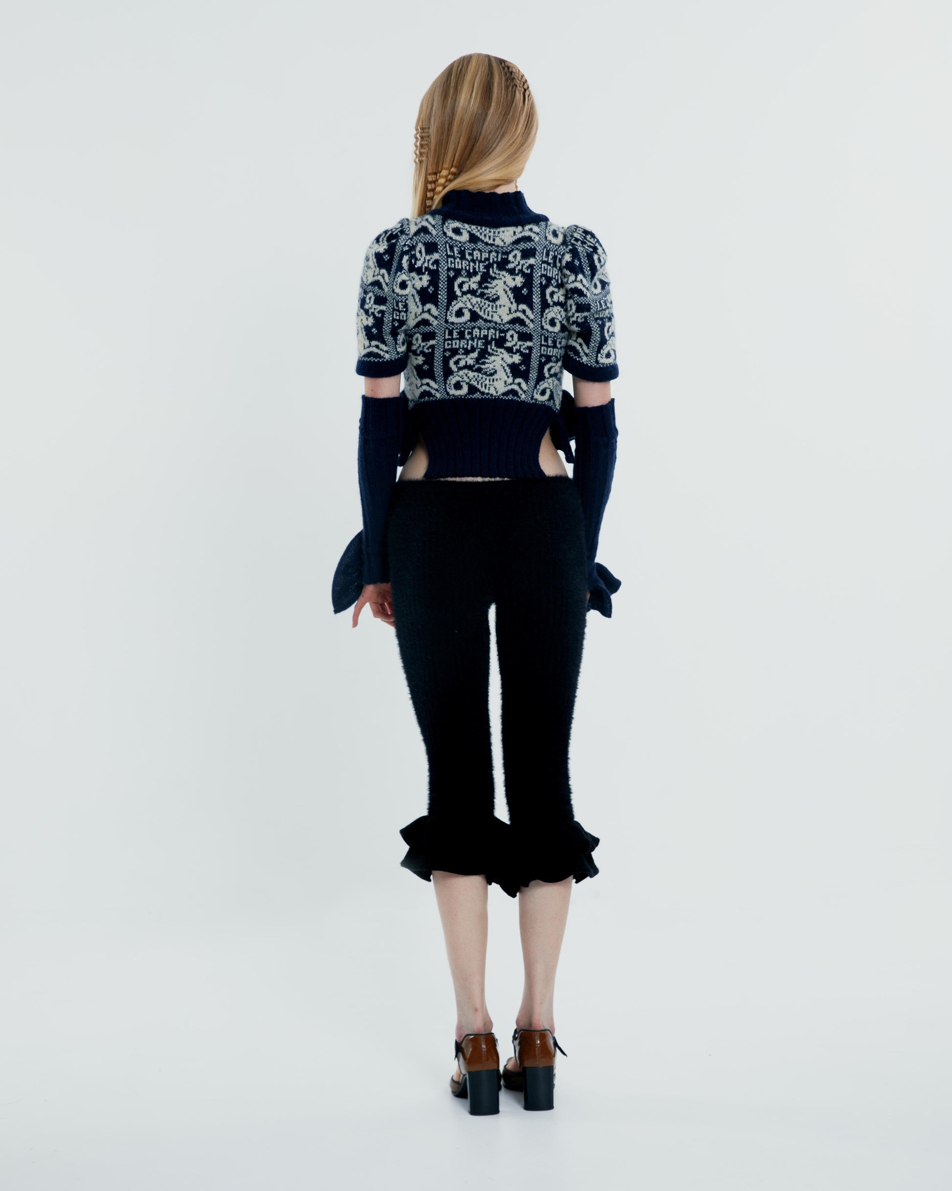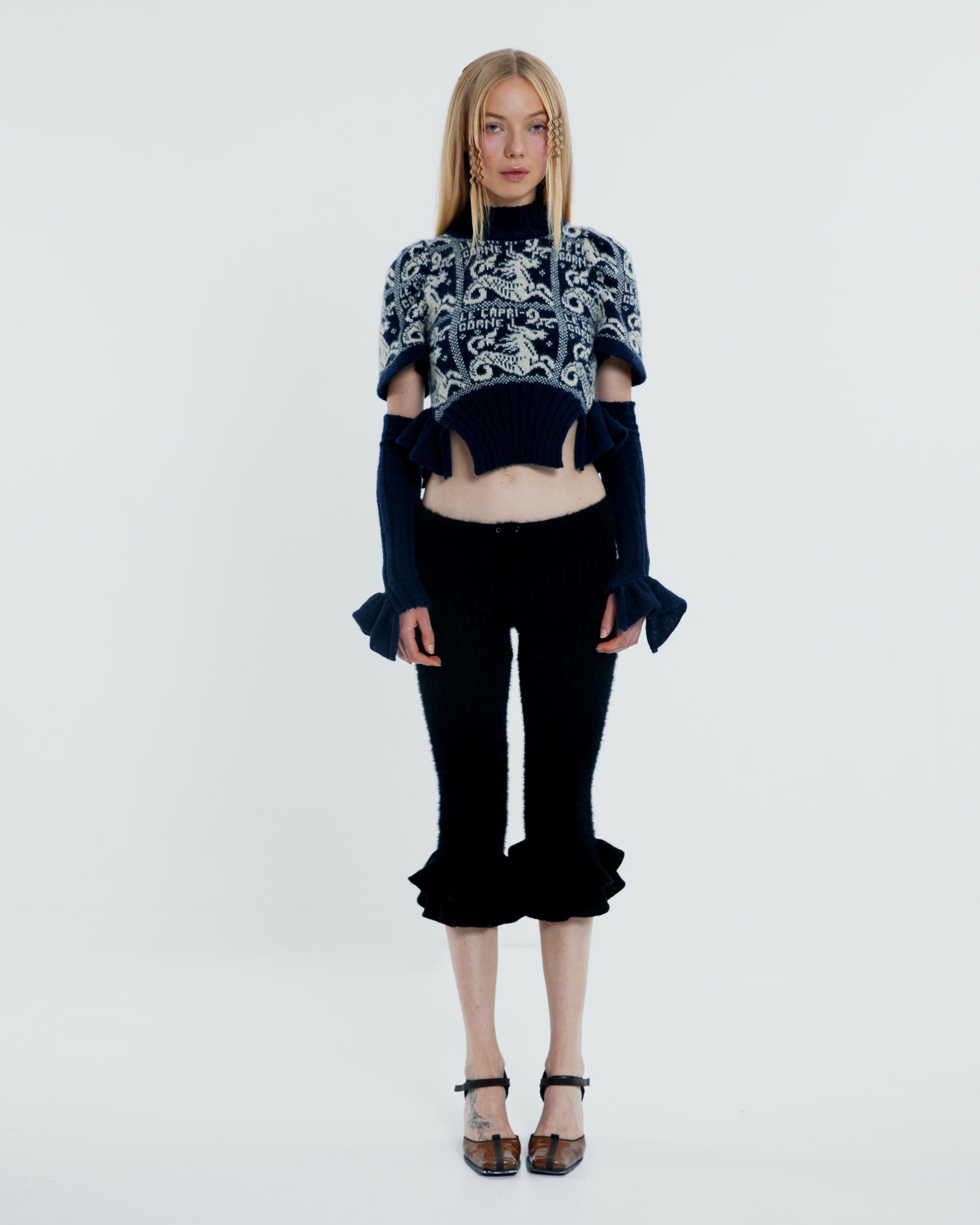 This top features ruffle details on the sides that cinch the waist, along with matching ruffled cuffs, and of course pretty balloons sleeves. The best part is that you can select your zodiac sign to create a fully unique sweater.